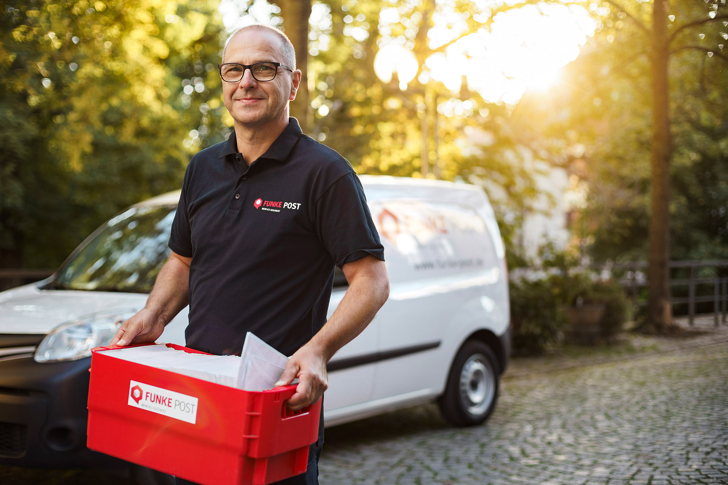 Der Postdienstleister der Funke Mediengruppe benötigte zum Markteintritt Fotos die sowohl den Endkunden als auch die Geschäftkundensparte ansprechen.